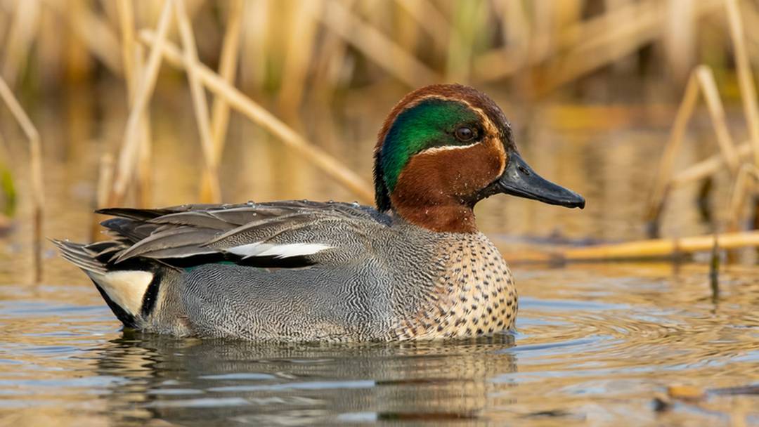 The Eurasian Teal (Anas crecca) is the smallest dabbling duck in Europe. Compact, agile, and gregarious, it is often seen in large flocks during winter. Its average dimensions are: