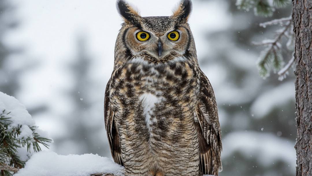 Look for its ear tufts and yellow eyes: This is the most striking feature distinguishing it from most other nocturnal raptors. If you spot a large owl with prominent "feathered ears" and bright yellow eyes, it is likely a Great Horned Owl.