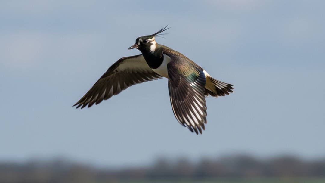Le vol papillonnant : Contrairement aux autres limicoles au vol direct, celui du Vanneau est lent, lourd et erratique, presque 'papillonnant', avec ses larges ailes arrondies. C'est le meilleur critère pour le repérer en vol.